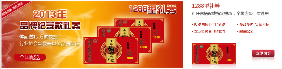 大閘蟹禮券是饋贈親朋好友、公司情意往來的好選擇,購買大閘蟹禮券也是輕松購買大閘蟹的方式。【查看詳情】